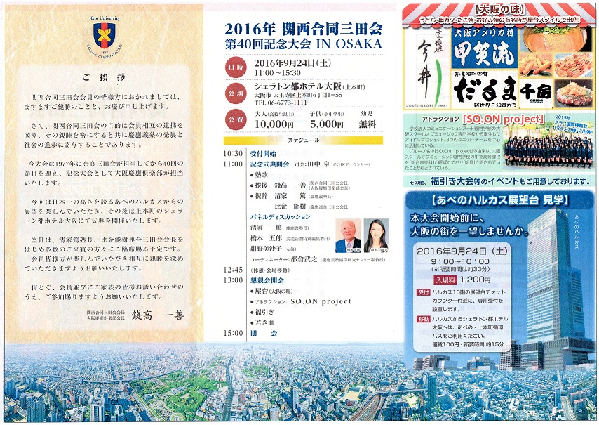 ご出席を希望の方は、案内文の下段に記入欄がありますので、各自で大阪慶応倶楽部宛にお申込み下さいますよう、お願いいたします。